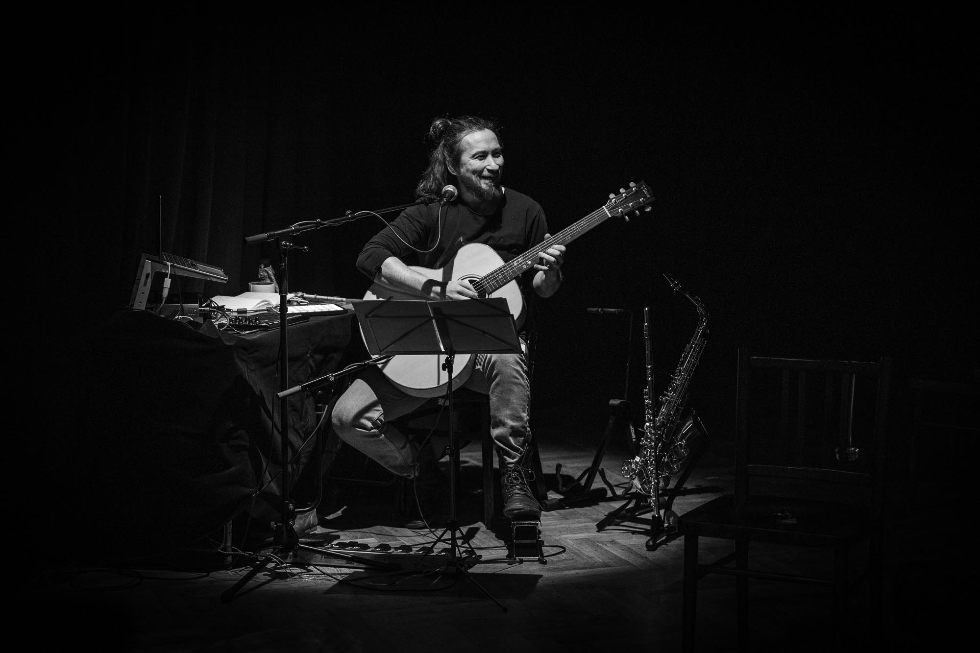 v tomto případě hudební parťák - kytara, saxofon, zpěv