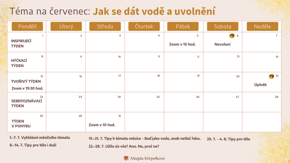 - dvakrát měsíčně 90 minutové setkání on-line. Tématicky k tvým aktuálním prožitkům. Bude to jediné místo, krom VIP mentoringů, kde mě můžete online potkat. Kruhy sdílení v kurzech jsou zrušeny. I když nebudeš moci přijít živě, do knihovny se bude uschovávat záznam a bohatství klubu bude stále růst.
